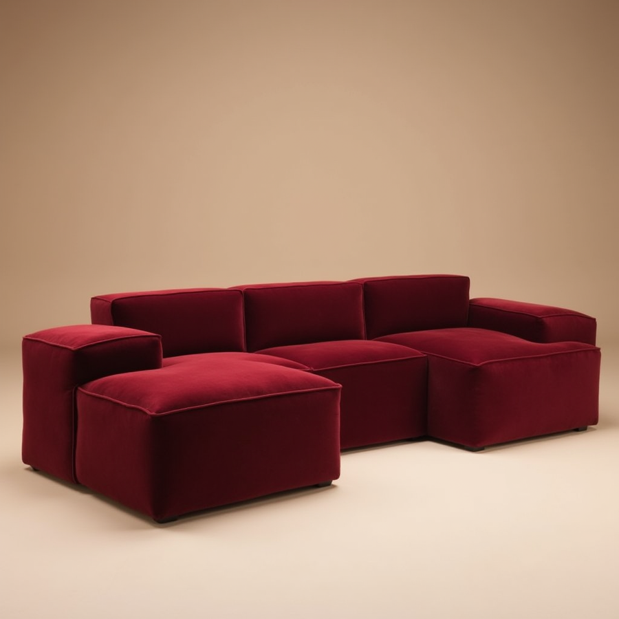 The quality of this sofa is reflected in its solid construction and meticulous finishes. Each module is designed to offer stability and comfort, ensuring a long-lasting user experience. The velvet used is highly durable, helping to maintain its sophisticated appearance over time. The seams are well-finished, ensuring that the sofa retains its shape and design consistency with regular use.