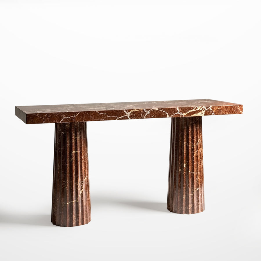 This Kim Console stands out for its classic design with a contemporary twist, perfect for those seeking a sophisticated piece that combines functionality and artistry. The console features a rectangular surface with clean, elegant lines, supported by two cylindrical bases with fluted details reminiscent of classical columns. This design, inspired by neoclassical style, adds an architectural and majestic character to any space, making it ideal for elegant and refined interiors. The console is available in three sizes: 100 cm, 150 cm, and 200 cm, allowing it to adapt to different needs and room dimensions.