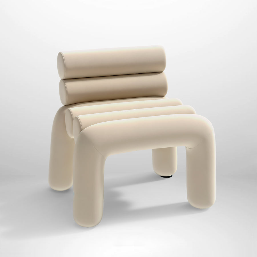 The Nora Couch features a modern and avant-garde design, characterized by minimalist lines and an innovative structure that resembles geometric shapes. The chair is composed of several padded cylinders that integrate to form the seat and backrest, offering a visually unique and attractive appearance. This design is not only aesthetically pleasing but also provides ergonomic and comfortable support. Available in green and beige colors, this couch is perfect for adding a contemporary touch to any space, fitting well in both modern environments and more classic decors.