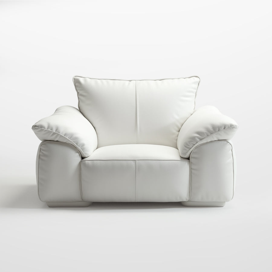 This Tiberio Blanco features a modern and enveloping design, with smooth lines and curves that bring a contemporary and cozy style. Its wide structure and generously padded cushions invite relaxation, making it an ideal piece for any space. The large armrests and plush backrest provide comfortable support for the body. This design is available in two material options: natural leather, which adds a touch of luxury, or synthetic leather, offering an easier-to-maintain alternative.