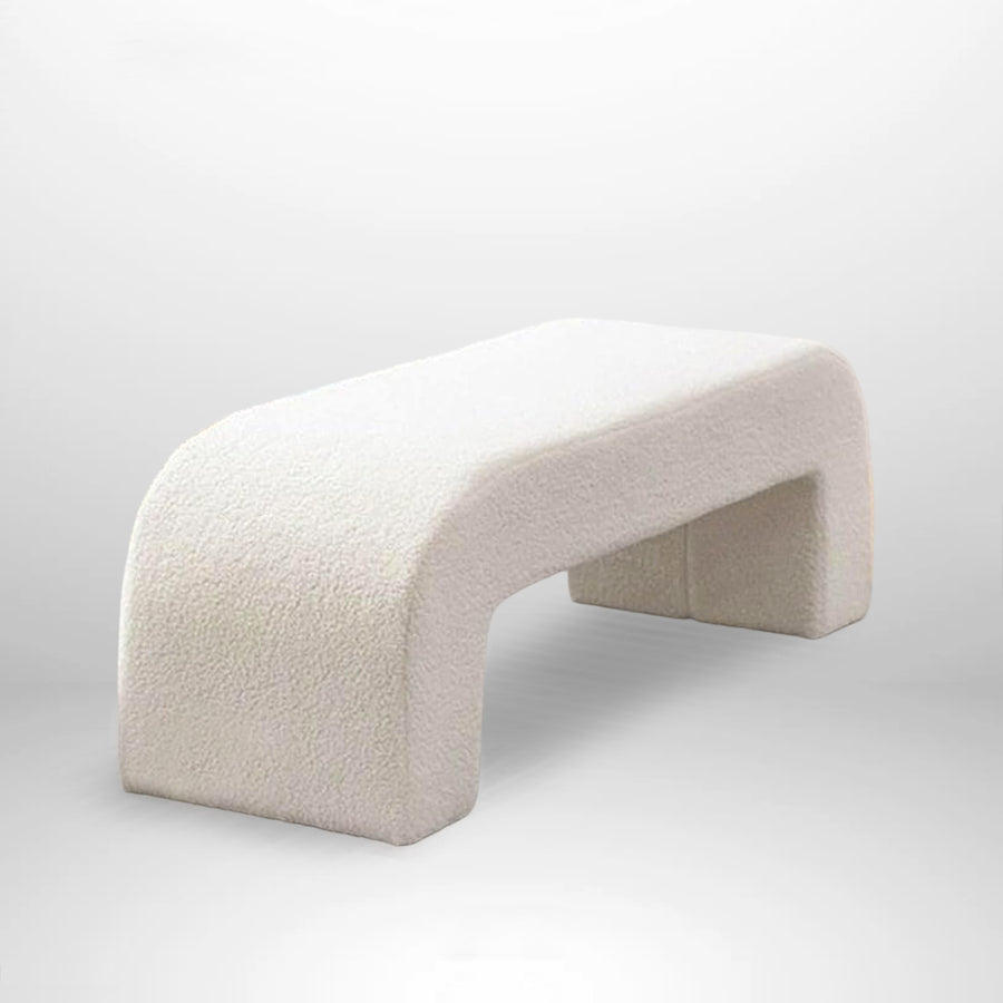 The bench is made from premium materials that ensure both durability and easy maintenance. The bouclé fabric used in the upholstery is soft and resilient, known for its durability and ability to withstand daily wear. Additionally, it is easy to clean, making it a practical option for the home. The internal structure, though not visible, is made from solid materials that guarantee the stability and strength needed to withstand constant use. Overall, the materials used not only complement the bench's aesthetic design but also ensure that it maintains its beauty and functionality over time.