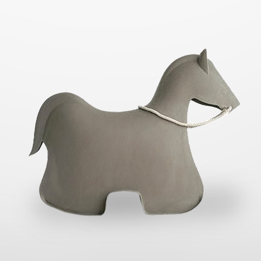 The Horse Stool features a playful and modern design, inspired by the shape of a horse. Its minimalist and rounded silhouette gives it a contemporary style, making it perfect for complementing any space, whether in a children's room or a modern, casual environment. The stool is designed with smooth lines and a matte finish, giving it an elegant and simple appearance. The detail of the rope around the "snout" of the horse adds a decorative touch that highlights its unique and fun character. Available in various colors—dark gray, white, gray, black, and brown—it allows for adaptation to different interior styles.
