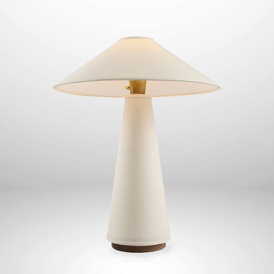 The Stella Lamp features an elegant and minimalist design characterized by clean lines and a conical shape. The ceramic base rises smoothly towards the top, providing a stable and visually appealing foundation. The fabric shade, with its flared shape, perfectly complements the conical base, creating a balanced and sophisticated appearance. This combination of simple forms and high-quality materials makes the lamp a versatile piece, suitable for a variety of decor styles, from modern to more classic.