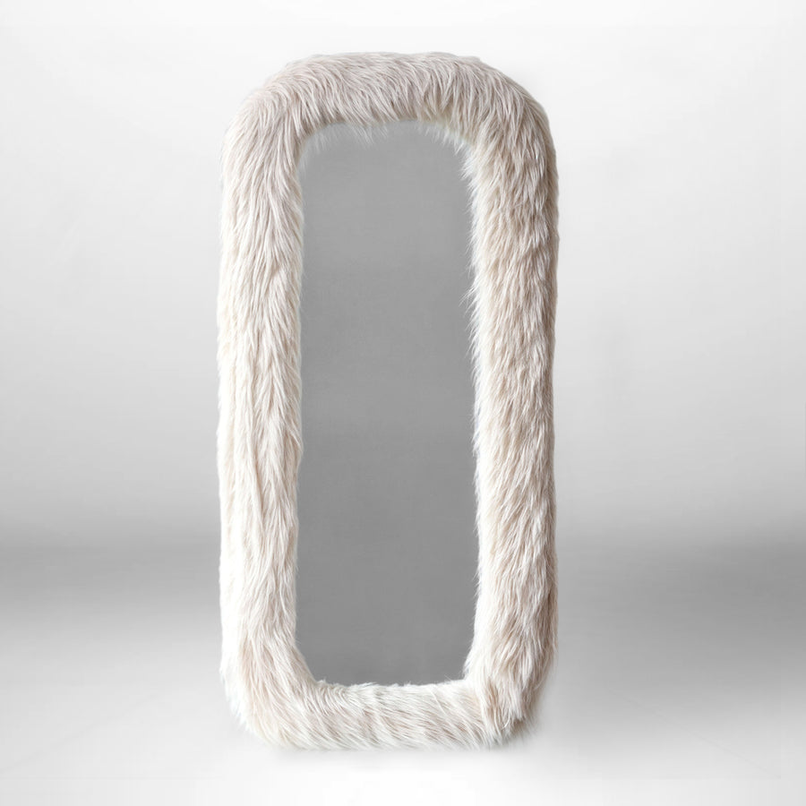 The quality of this mirror is exceptional, crafted from carefully selected materials to ensure durability and strength. The frame is constructed with a solid base that keeps the mirror firm and stable, while the fur coating is designed to maintain its softness and fluffiness over time. The mirror itself offers a clear, distortion-free image, reflecting the commitment to quality and attention to detail in its construction.