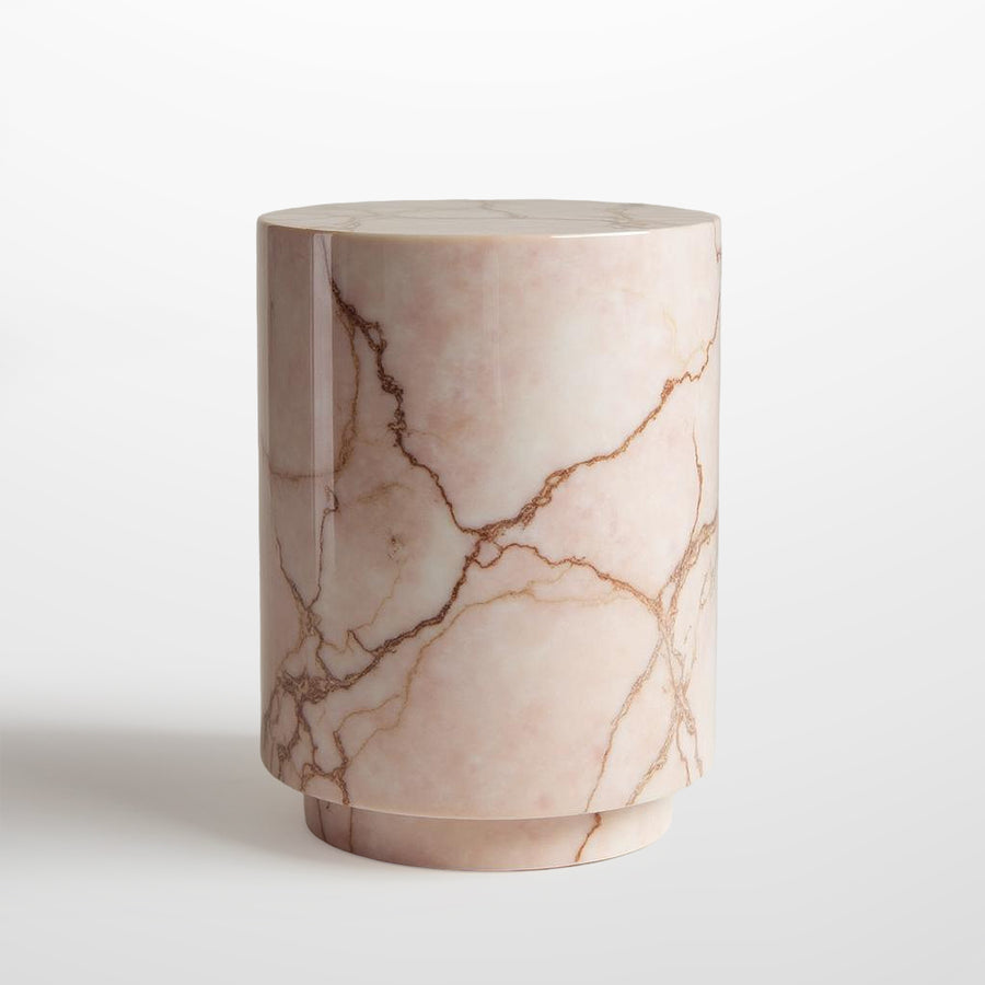 This Douro Do Destino features an elegant and minimalist cylindrical design. Its simple and symmetrical shape adds a sense of sophistication and modernity, making it ideal for contemporary and minimalist-style spaces. The marble, with its delicate pink tones and natural veining, brings a warm and refined touch that allows the table to stand out without overwhelming the space. This design is perfect as a complementary piece in living rooms, bedrooms, or any corner that needs a touch of understated elegance.