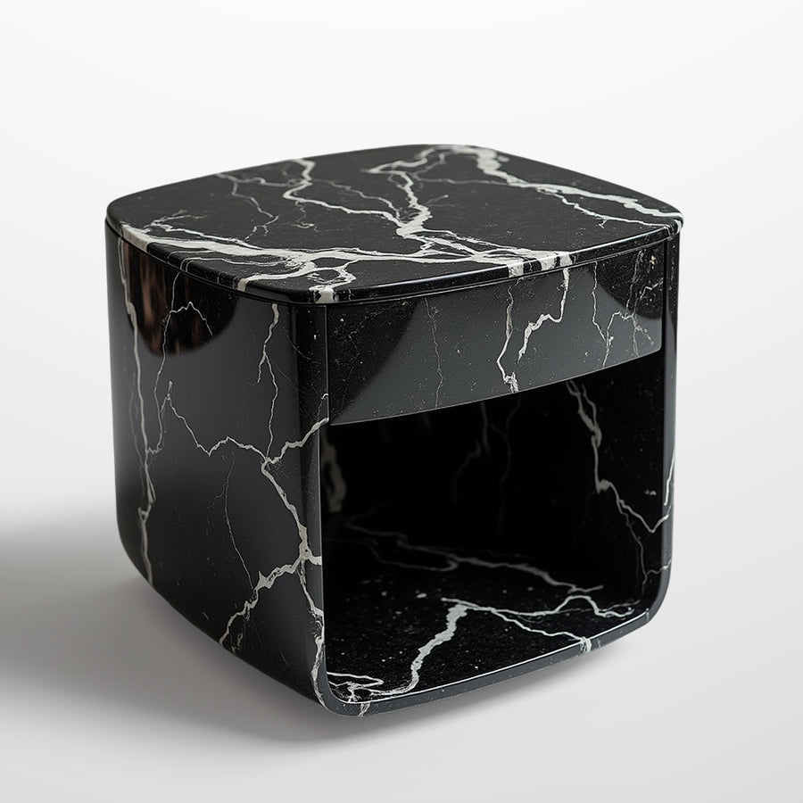 The Negro Marquina marble used in this table is known for its strength and the striking white veins that contrast with the deep black background. This material not only provides a luxurious appearance but is also highly durable and easy to keep clean. A simple damp cloth is sufficient to remove dust and maintain its natural shine, making daily maintenance easy. The smooth finishes and softly rounded corners add an extra level of sophistication and safety.