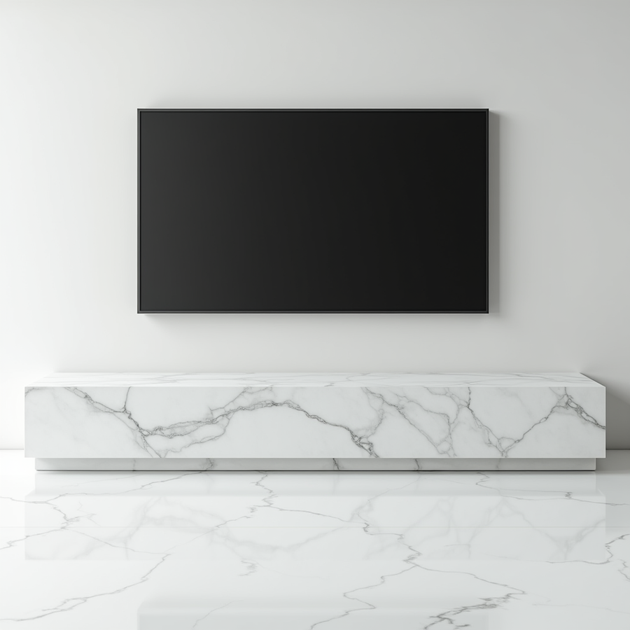 The quality of this console is exceptional, reflecting meticulous attention to every detail. The Carrara marble used is of premium quality, known for its classic beauty and durability. The structure of the console is designed to provide long-lasting strength and stability, capable of supporting the weight of TVs and other electronic devices without compromising its integrity. The finishes are carefully crafted to ensure a consistent and polished appearance.