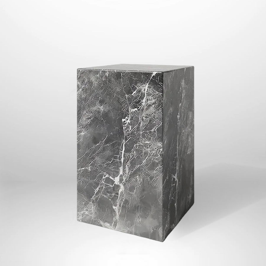 This Ambra Grigio Carnico Table features a modern and sophisticated design, defined by its cubic shape that brings a sense of understated elegance to any space. The Grigio Carnico marble, with its dark gray background and intense white veining, gives the table an imposing and refined presence, ideal for contemporary interiors that seek a blend of style and functionality. The simplicity of the form allows the natural beauty of the marble to take center stage, making this table a standout centerpiece in any room.