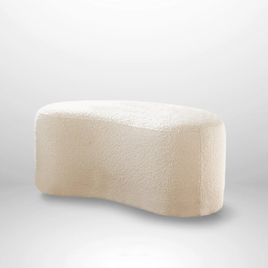 The bench stands out for its high-quality construction. The internal structure is solid and robust, ensuring that the bench maintains its shape and strength over time. The bouclé upholstery is applied uniformly, providing a soft and pleasant texture to the touch across the entire surface of the bench. The finishes are precise, ensuring that every curve and contour of the bench is well-defined and aesthetically pleasing. Additionally, the ergonomic design offers an extra level of comfort, allowing for prolonged use without sacrificing comfort.